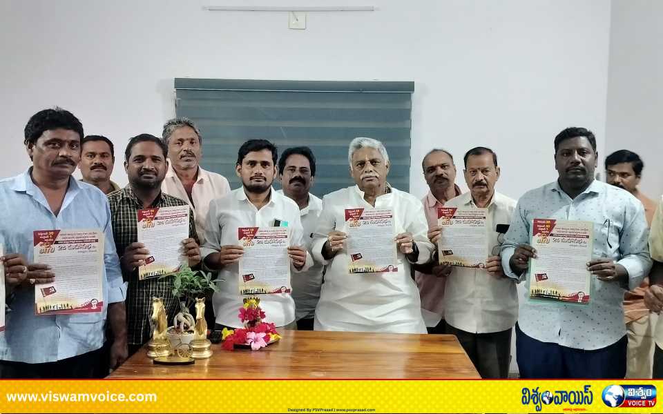 కాకినాడ జిల్లా జగ్గంపేట ఏపీ బిల్లింగ్ అండ్ అదర్ కన్స్ స్ట్రక్షన్ వర్కర్స్ యూనియన్ సిఐటియు అనుభందం కాకినాడ జిల్లా రెండవ మహాసభలు సెప్టెంబర్ 30, అక్టోబర్ 1 రెండు రోజుల పాటు జరగనున్నాయని, ఈ సందర్బంగా మహాసభల పోస్టర్ ను స్థానిక రావులమ్మ నగర్ లోని ఎమ్మెల్యే క్యాంప్ ఆఫీస్ లో జగ్గంపేట ఎమ్మెల్యే జ్యోతుల నెహ్రూ చేతుల మీదుగా ఆవిష్కరించారు. ఈ సందర్భంగా ఎమ్మెల్యే జ్యోతుల నెహ్రూ మాట్లాడుతూ కార్మికుల ప్రయోజనాలకు కూటమి ప్రభుత్వం కట్టుబడి ఉందని, మహాసభలు జయప్రదానికి తన వంతు సహకారాలు పూర్తిస్థాయిలో అందిస్తానని హామీ ఇచ్చారు. ఈనెల 23వ తేదీ రాష్ట్ర ముఖ్యమంత్రి చంద్రబాబునాయుడు పర్యటన పెద్దాపురంలో జరుగుతున్న సందర్భంగా భవన నిర్మాణ కార్మికుల సమస్యలపై వినతిపత్రం అందించే ఏర్పాటును ఎమ్మెల్యే నెహ్రూ జిల్లా కలెక్టర్ సాగిలి మోహన్ తో చర్చించారు. ఈ సందర్భంగా సంఘం కాకినాడ జిల్లా ప్రధాన కార్యదర్శి రొంగల ఈశ్వరరావు, కార్యనిర్వాహక అధ్యక్షులు చెక్కల రాజ్ కుమార్ మాట్లాడుతూ 2020లో జగన్ ప్రభుత్వం భవన నిర్మాణ కార్మికుల సంక్షేమ పథకాలను నిలుపుదల చేస్తూ తీవ్ర అన్యాయం చేశారన్నారు. అప్పటినుండి ఏ ప్రమాదంలో కార్మికుల చనిపోయినా కార్మికుని కుటుంబాలు రోడ్డున పడుతున్నాయని, సంక్షేమ బోర్డు పథకాలు అమలులోకి వస్తే కొంతమేర కార్మికుల ప్రయోజనాలు నెరవేరుతాయని, తక్షణం సంక్షేమ బోర్డు అమలకు ఆటంకంగా ఉన్న జగన్ ఉత్తర్యులు 1214 మెమో సర్కులర్ రద్దు చేయాలని డిమాండ్ చేశారు. 2019 నుండి పెండింగ్ లో ఉన్న క్లైమూల పరిహారాలను కార్మికులకు అందించేందుకు ప్రభుత్వం చర్యలు తీసుకోవాలని కోరారు.ఈ కార్యక్రమంలో రాష్ట్ర ఆర్యవైశ్య కార్పొరేషన్ డైరెక్టర్ కొత్తకొండ బాబు, శ్రీ వినాయక రావులమ్మతల్లి తాపిమేస్త్రి సంక్షేమ సంఘం గౌరవ అధ్యక్షులు బోరా సత్తిబాబు, ప్రెసిడెంట్ కొల్లి సత్తిబాబు, సెక్రటరీ కెంగం దుర్గాప్రసాద్, వైస్ ప్రెసిడెంట్ కెంగం బుజ్జి, జనపరెడ్డి రమణ, పైడి యేసు, రామచంద్రపురం సత్తిబాబు, ఎలక్ట్రిషియన్ సంఘం ఈర్లు శ్రీను, సాయి విజయదుర్గ తాపీ మేస్త్రుల సంఘం ప్రెసిడెంట్ నగమళ్ల అన్నవరం తదితరులు పాల్గొన్నారు.
