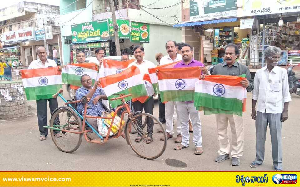 కొవ్వూరు పట్టణంలోని విజయ విహార్ సెంటర్ నందు భారతీయ జనతా పార్టీ పట్టణ కమిటీ ఆధ్వర్యంలో 200 జాతీయ జెండాలను పంపిణీ