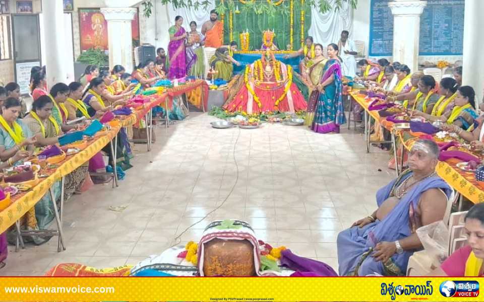 గౌరీ దేవిని పసుపు కొమ్ములతో పూజించిన స్త్రీలకు సంతాన యోగము కలిగి నిండు సౌభాగ్యములు, సిరిసంపదలు కలుగుతాయని శాస్త్రాలు ఘోషిస్తున్నాయని వేద పండితులు చల్ల శ్రీకాంత్ అన్నారు. బుధవారం కొవ్వూరు పట్టణంలోని ఆర్యవైశ్య కళ్యాణమండపం నందు వాసవి కన్యకా పరమేశ్వరి అమ్మవారి నందు లక్ష పసుపు కొమ్ముల వ్రత మహోత్సవాన్ని మహిళలు భక్తిశ్రద్ధలతో నిర్వహించారు. వేద పండితులు చల్లా శ్రీకాంత్ పర్యవేక్షణలో జరిగిన పసుపు కొమ్ముల నోము కార్యక్రమంలో 108 మంది మహిళలు గౌరీదేవి అమ్మవారిని పసుపు కొమ్ములతో పూజించారు ఈ కార్యక్రమానికి ముఖ్య అతిథులుగా కొవ్వూరు మున్సిపల్ కమిషనర్ గ్రంధి సందీప్ కుమార్ ఎంఈఓ రామకిషోర్ ఆర్యవైశ్య సంఘ పెద్దలు ముద్దుల సత్యనారాయణ మద్దుల సోమరాజు తదితర ఆర్యవైశ్యంగా నాయకులు ఆర్యవైశ్య మహిళలు అధిక సంఖ్యలో పాల్గొన్నారు