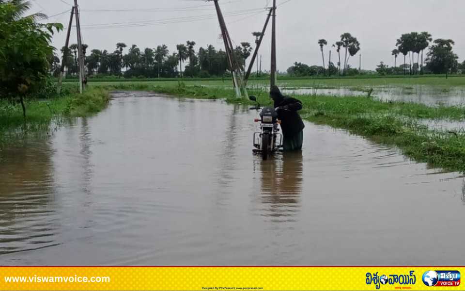 చిన్నపాటి వర్షాలకే రోడ్లు జలమయం అవుతున్న పరిస్థితి కొవ్వూరు మండలం నందమూరు – పసివేదల వెళ్లే రోడ్లు చూస్తే అర్ధమవుతుంది. నిన్న రాత్రి కురిసిన వర్షాలకు అడుగు లోతు నీరు రావడంతో ద్విచక్ర వాహనదారులు నానాతంటాలు పడుతున్నారు. వర్షం పడితే ఇది చిన్న పాటి కాలువగా మారుతుందని ప్రజల వాపోతున్నారు. అధికారులతో ఎన్ని సార్లు చెప్పిన పట్టించుకోడం లేదని , మాకు సరైన రోడ్లు వేయండి అని ప్రజలు ప్రాధేయపడుతున్నారు.