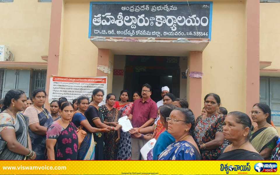 ప్రభుత్వ ఉద్యోగులకు సమానంగా, అన్ని పనులకు అంగన్వాడీ వర్కర్లను ఉపయోగించుకుంటూ అందుకు అవసరమైన వసతులను సమకూర్చకుండా, అదనపు పని భారంతో ప్రభుత్వం తమను ఇబ్బంది పెడుతుందని ఆల్ ఇండియా అంగన్వాడి వర్కర్స్ & హెల్పర్స్ యూనియన్ (సిఐటియు) ఆదేశాల మేరకు, గురువారం మండల కేంద్రమైన రాయవరంలో, మండల అంగన్వాడీ యూనియన్ కార్యకర్తలు నల్ల చీరలు ధరించి నినాదాలు చేస్తూ,మానవహారం గా ఏర్పడి నిరసన తెలిపారు. అనంతరం పలు సమస్యల తో కూడిన వినతి పత్రాన్ని ఎమ్మార్వో ఐపి శెట్టి కి అందించారు. వినతి పత్రం లోని సమస్యలను పత్రికా ముఖంగా వారు తెలియజేస్తూ, భారతదేశ వ్యాప్తంగా 2014 నుండి కేంద్ర ప్రభుత్వం, 2019 నుండి రాష్ట్ర ప్రభుత్వం తమపై పని భారం పెంచాయే తప్ప, వేతనాలు పెంచలేదని, తామంతా కలిసి గత సంవత్సరం లో 42 రోజుల చారిత్రాత్మకమైన సుదీర్ఘ సమ్మె చేయగా జూలై నెలలో వేతనాలు పెంచుతామని హామీ ఇచ్చి, ఏడాది గడిచినా ప్రభుత్వం నోరు మెదపడం లేదని వాపోయారు. 2022 లో ఇచ్చిన మొబైల్ ఫోన్స్ సరిగ్గా పని చేయక అంగన్వాడి సెంటర్ నిర్వాహకులు గా తీవ్ర ఇబ్బందులు ఎదుర్కొంటున్నామని, పాత ఫోన్లు కావడం, పోషణ ట్రాకర్, బాల సంజీవని వంటి యాప్ లు, అప్గ్రేడ్ వెర్షన్ అవ్వడంతో మొబైల్ ఫోన్లు సపోర్ట్ చేయడం లేదని, పైగా యాప్ లలో ఎప్పటికప్పుడు అప్లోడ్ చెయ్యకపోతే సరుకులు ఇవ్వము అని చెప్పటం తమను మరింత ఇబ్బంది కి గురి చేస్తుందన్నారు. పదవ తరగతి కనీస విద్యార్హత తో చేరిన అంగన్వాడీ కార్యకర్తలకు కఠినమైన పదాలు అర్థం కావడం లేదని, మారుమూల గ్రామ ప్రాంతాలలో నేటికీ సిగ్నల్స్ రాక మేము ఇబ్బందులు ఎదుర్కొంటుంటే, అధికారులు మాత్రం ఏమి పట్టనట్లు తమపై ఒత్తిడి చేస్తున్నారని విమర్శించారు. గర్భిణులు,బాలింతలు చిన్న పిల్లల కు పేస్ యాప్ రద్దు చేయాలని, లబ్దిదారులు అంగన్వాడీ సెంటర్ కు సరుకుల నిమిత్తం వచ్చినప్పుడు సిగ్నల్ రాక, సర్వర్ పనిచేయక ఇబ్బంది పడుతున్నామని, లబ్ధిదారులకు అందించే సరుకులన్నీ ఒకసారి రాకపోవడంతో, పలుమార్లు లబ్ధిదారులను పిలుస్తుంటే, లబ్ధిదారులు కూడా తమపై అసహనం వ్యక్తం చేస్తున్నారని ఆవేదన చెందారు. ఈ కార్యక్రమం ద్వారా ప్రభుత్వాలు తమ సమస్యలను గుర్తించాలని, ముఖ్యంగా వేతనాలను పెంచి, మినీ అంగన్వాడి వర్కర్లను మెయిన్ వర్కర్లు గా మార్చుతూ జీవో విడుదల చేయాలన్నారు, అన్ని యాప్ల్ కలిపి ఒక యాప్ గా మార్చాలని, ఫేస్ యాప్ లో ఇన్,అవుట్ లను రద్దు చేయాలని, అంగన్వాడి సెంటర్ నిర్వాహకులకు 5జి నెట్వర్క్ తో కూడిన ట్యాబ్ లను అందించాలని, కొత్తగా చేరిన నిర్వాహకులకు ప్రధానమంత్రి మాతృ వందనం పథకం కు సంబంధించిన పనులు అప్పగించరాదని, గ్రాడ్యుటి జీవోలో మార్పులు చేసి, హెల్పర్లు ప్రమోషన్ల ను పొందడానికి గైడ్లైన్స్ రూపొందించడం తో పాటు తమను 