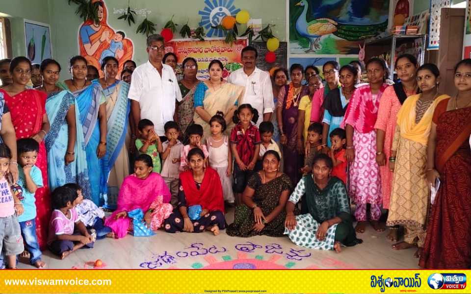జగ్గంపేట మండలం రాజపూడి అంగన్వాడి కేంద్రంలో ఐసిడిఎస్ ప్రాజెక్ట్ జగ్గంపేట సీడీపీఓ ఎం. పూర్ణిమ ఆధ్వర్యంలో పోషకహర దినోత్సవ కార్యక్రమం నిర్వహించారు. ఈ కార్యక్రమానికి సర్పంచ్ భూసాల విష్ణుమూర్తి ముఖ్య అతిథిగా హాజరయ్యారు.ఈ సందర్భంగా సర్పంచ్ విష్ణు మారుతి మాట్లాడుతూ బిడ్డ గర్భంలో ఉన్నప్పటి నుండి తల్లితో అనుబంధం ఏర్పడుతుంది. అంగన్వాడీ కేంద్రాల ద్వారా గర్భ దశ నుంచి ఐదు సంవత్సరాల వయసు వరకూ పిల్లలకు అనేక సేవలు అందిస్తున్నాం. బాలింతలు, గర్భిణీలు అంగన్వాడీ కేంద్రాలలో అందిస్తున్న పోషకాహారం తప్పనిసరిగా తీసుకోవాలి. చిరుధాన్యాలు, ఆకుకూరలు, మునగాకు వంటి వాటిని ఆహారంలో చేర్చుకోవాలి అని సూచించారు. అలాగే అంగన్వాడీ టీచర్లు తల్లులకు అవగాహన కల్పించే బాధ్యతను సమర్థంగా నిర్వర్తించాలని సూచించారు.కార్యక్రమంలో భాగంగా తల్లులు ఇంటివద్ద తయారు చేసిన పిండి వంటకాలను తీసుకువచ్చారు. వాటిలో ఉత్తమమైన మూడు వంటకాలను ఎంపిక చేసి ప్రధమ, ద్వితీయ, తృతీయ బహుమతులు అందజేశారు. ఒక గర్భిణీకి శ్రీమంతం నిర్వహించారు. మొదటి మెట్టు అంగన్వాడి కేంద్రం నుండే చిన్నారుల అభ్యాసం ప్రారంభమవుతుందని ఈ సందర్భంగా పేర్కొన్నారు.ఈ కార్యక్రమంలో పంచాయతీ సెక్రటరీ నరసింహామూర్తి, సూపర్వైజర్ అమ్మాజీ ,ఎ ఎన్ మ్ ఆశావర్కర్లు, అంగన్వాడి టీచర్లు, చిన్నారుల తల్లులు తదితరులు పాల్గొన్నారు.