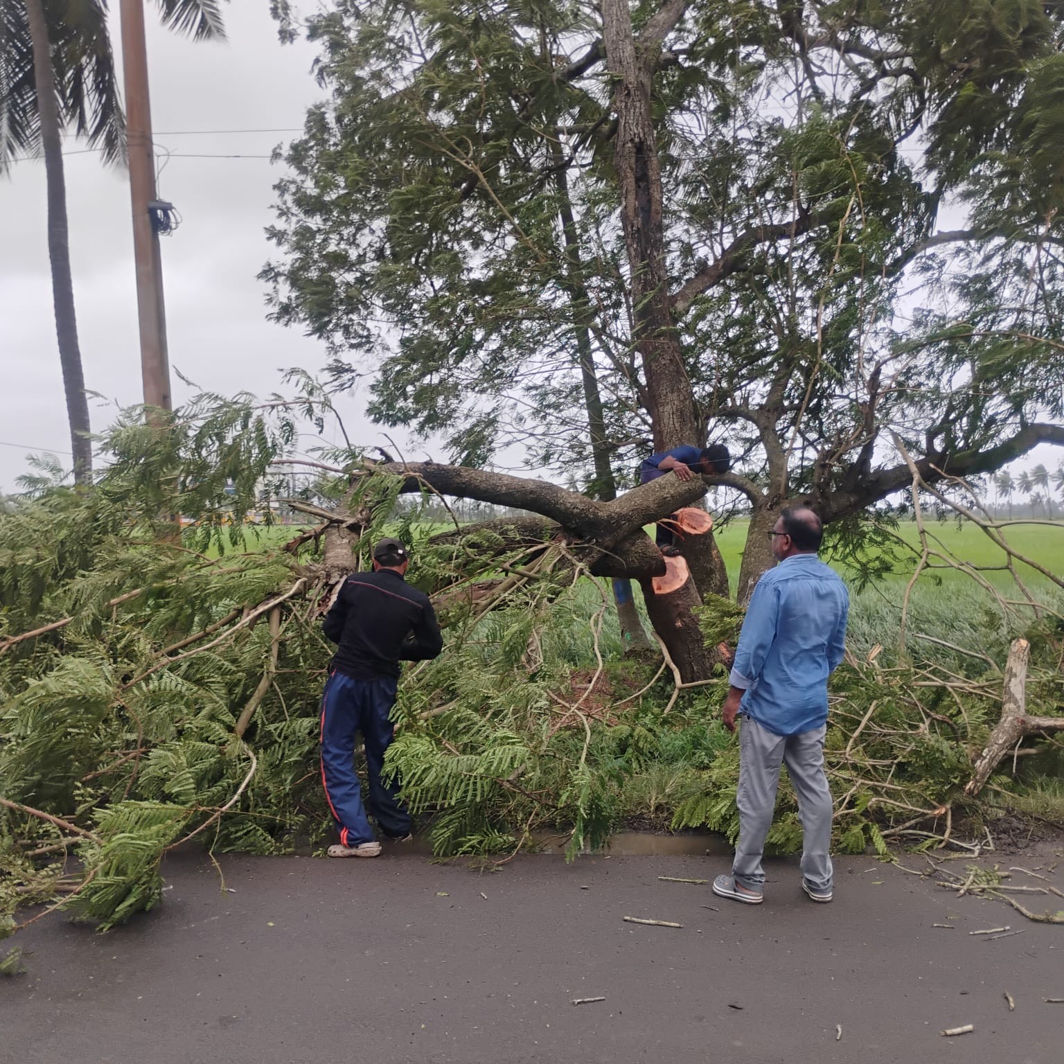 డాక్టర్ బి.ఆర్ అంబేద్కర్ కోనసీమ జిల్లా వ్యాప్తంగా మొథా తుఫాను తీరం దాటే సమయంలో బలమైన ఈదురు గాలులు వీస్తూ,తీవ్ర ప్రభావం చూపనుందనే ఉన్నతాధికారుల హెచ్చరికల మేరకు, రామచంద్రపురం ఎగ్జిక్యూటివ్ ఇంజనీర్ కె.రత్నాలరావు ఆదేశాలతో రాయవరం మండల వ్యాప్తంగా 33 కె.వి లైన్ తీగలపై విరిగిపడే అవకాశం ఉన్న చెట్టు కొమ్మలు,తాటి, కొబ్బరి చెట్లను మంగళవారం ఉదయం నుండి అసిస్టెంట్ ఇంజనీర్ సందాక శ్రీనివాసులు ఆధ్వర్యంలో లైన్ మేన్ శ్రీకాంత్ ఇతర సిబ్బందితో కలిసి యుద్థ ప్రాతిపదికన తొలగించారు.