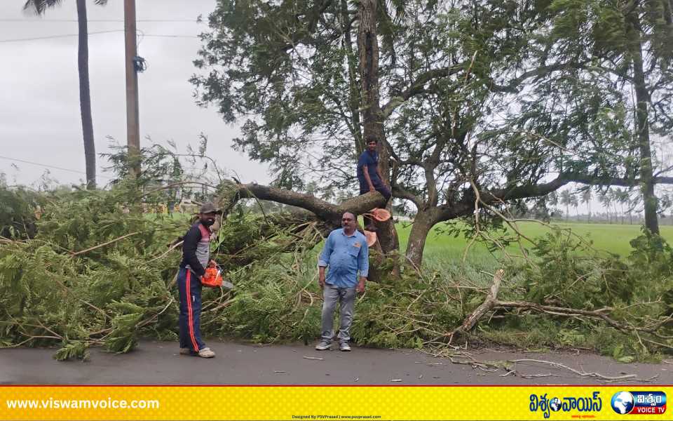 డాక్టర్ బి.ఆర్ అంబేద్కర్ కోనసీమ జిల్లా వ్యాప్తంగా మొథా తుఫాను తీరం దాటే సమయంలో బలమైన ఈదురు గాలులు వీస్తూ,తీవ్ర ప్రభావం చూపనుందనే ఉన్నతాధికారుల హెచ్చరికల మేరకు, రామచంద్రపురం ఎగ్జిక్యూటివ్ ఇంజనీర్ కె.రత్నాలరావు ఆదేశాలతో రాయవరం మండల వ్యాప్తంగా 33 కె.వి లైన్ తీగలపై విరిగిపడే అవకాశం ఉన్న చెట్టు కొమ్మలు,తాటి, కొబ్బరి చెట్లను మంగళవారం ఉదయం నుండి అసిస్టెంట్ ఇంజనీర్ సందాక శ్రీనివాసులు ఆధ్వర్యంలో లైన్ మేన్ శ్రీకాంత్ ఇతర సిబ్బందితో కలిసి యుద్థ ప్రాతిపదికన తొలగించారు.